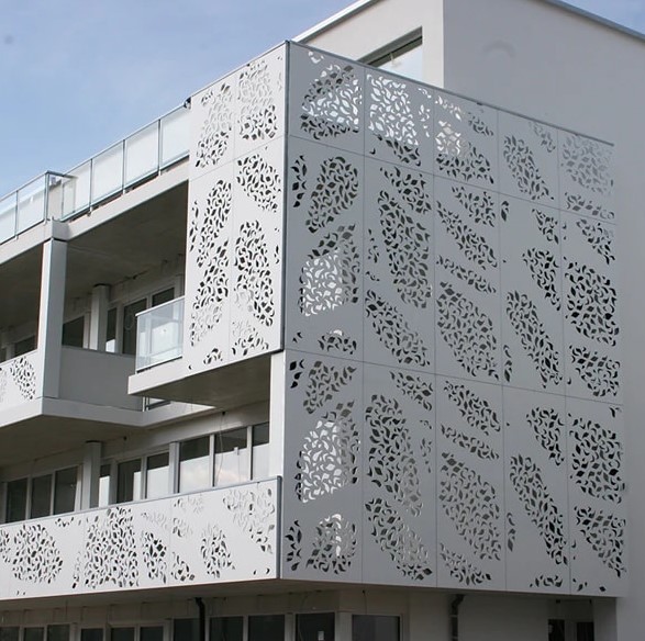 在建筑装饰领域,雕花铝单板以其独特的艺术魅力与卓越性能,正成为设计师与建筑师塑造空间美学的理想选择。它突破传统材料的局限,以金属为载体,将雕刻艺术与现代科技完美融合,为建筑表皮赋予灵动的生命力。